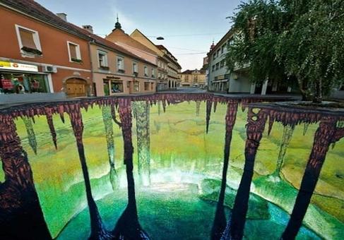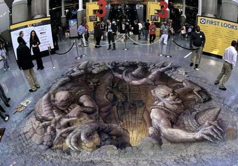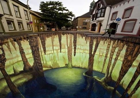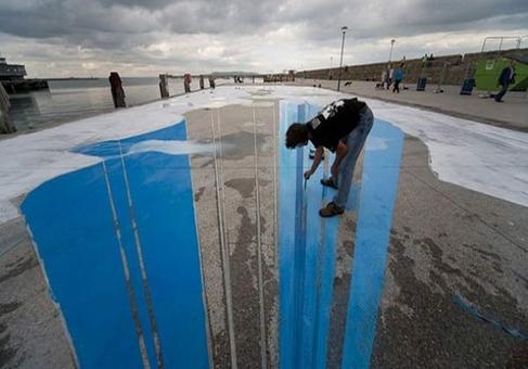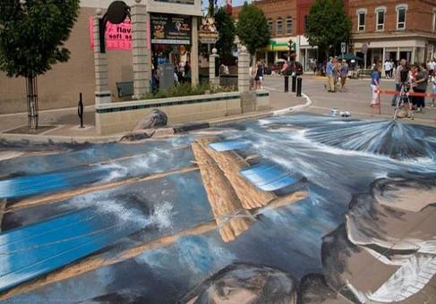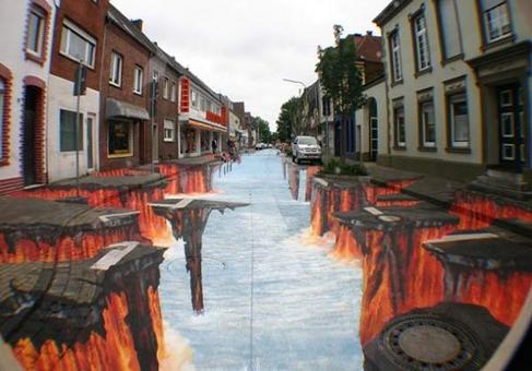 تصاویرجالب: نقاشیهای سهبعدی روی آسفالت